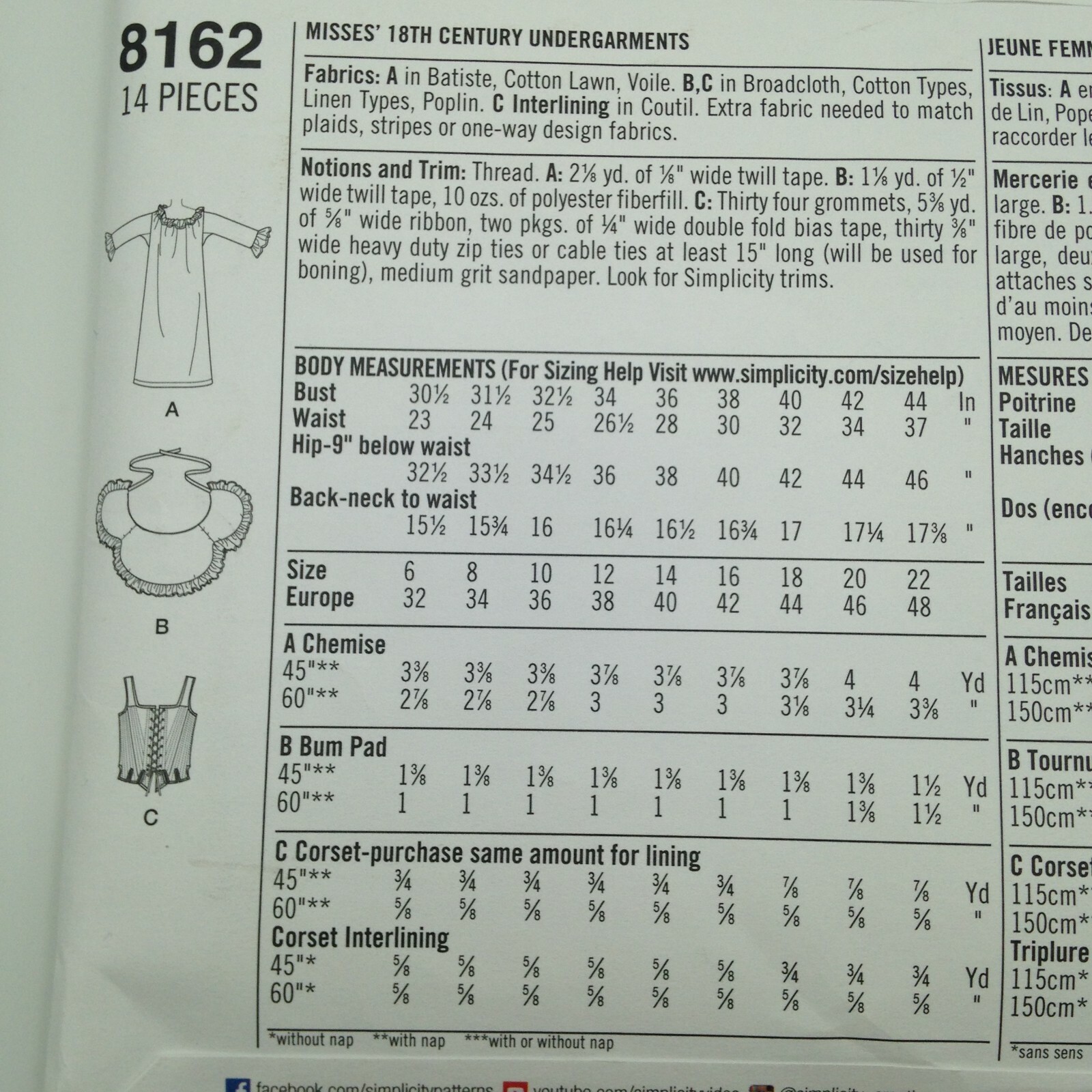 Amazon Com Simplicity 8162 Women S 18th Century Undergarments Historical Costume Sewing Pattern Sizes 14 22 Arts Crafts Sewing